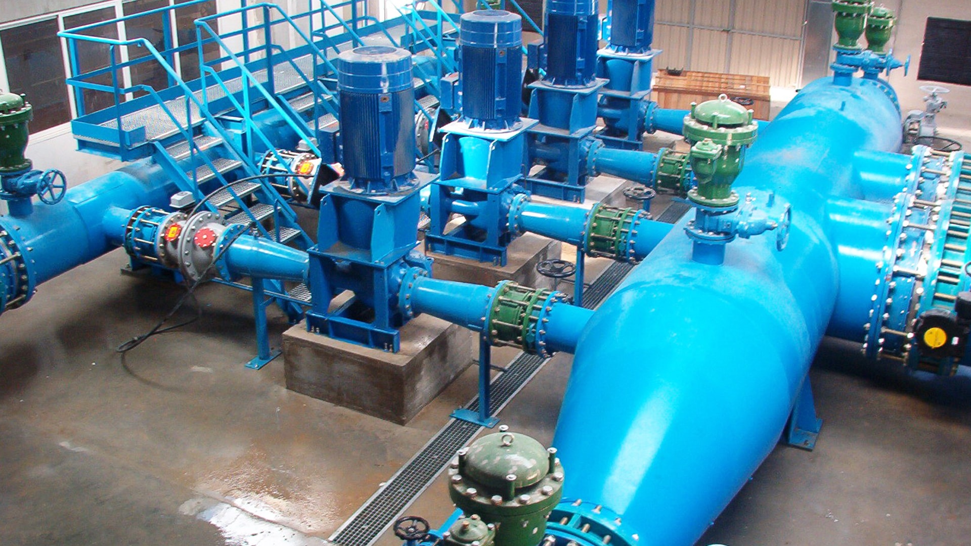 La obra electromecánica consistió en el montaje de 6 bombas de 1000 l/s y una potencia de 8.8 Kw cada una, comandadas mediante un sistema de flotadores y PLC y de un grupo electrógeno de 500 KVA para dotar al sistema de automatismo.